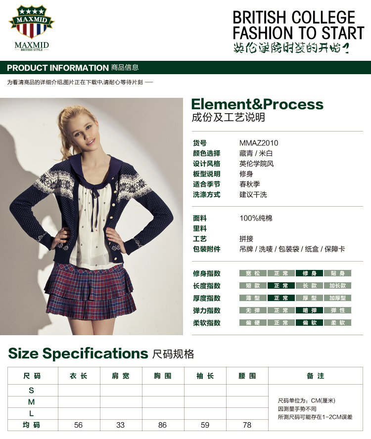 2013秋装新款 MAXMID英伦学院风 纯棉针织衫开衫毛衣 少女装批发
