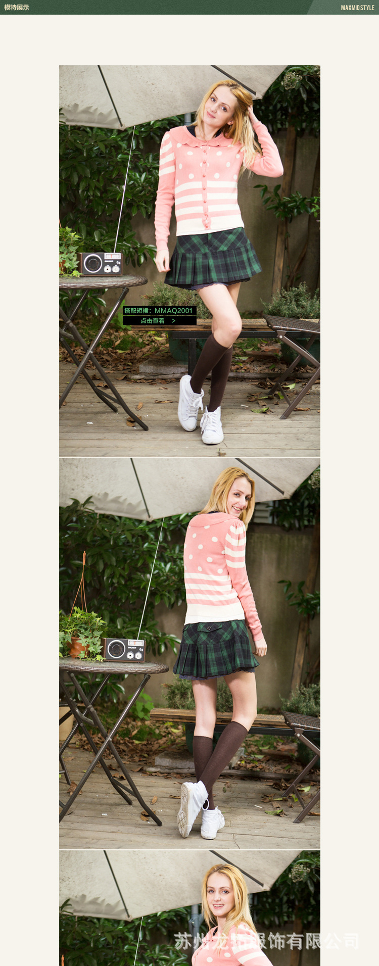 2013秋装新款 MAXMID英伦学院风 纯棉圆点条纹针织衫开衫毛衣批发