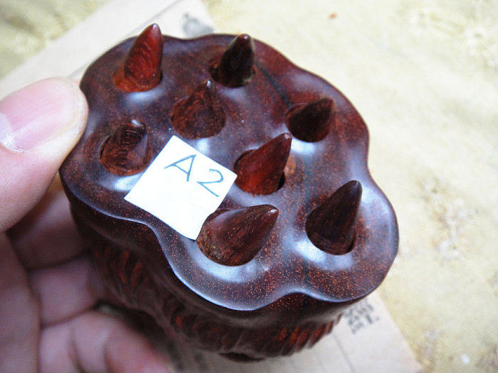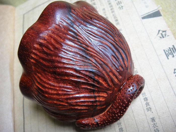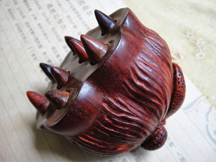 手工雕琢细致,莲蓬内的小叶紫檀莲子已嵌好拆不下的,但可转动。