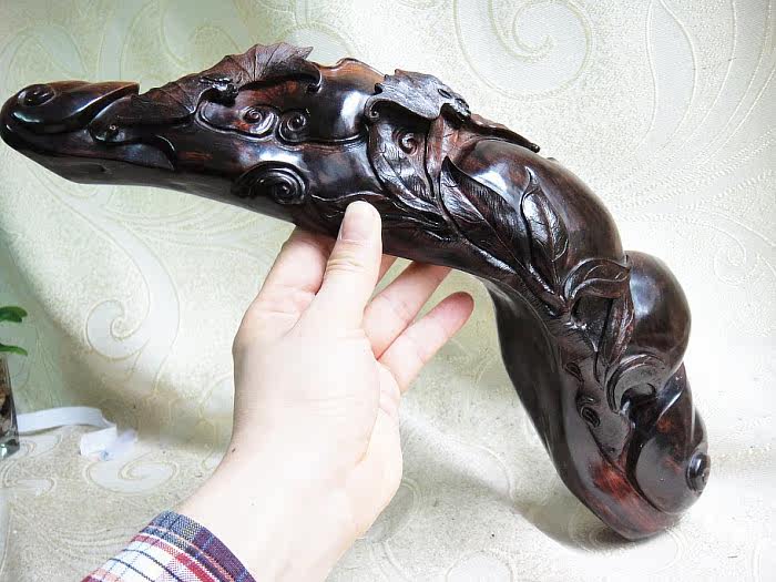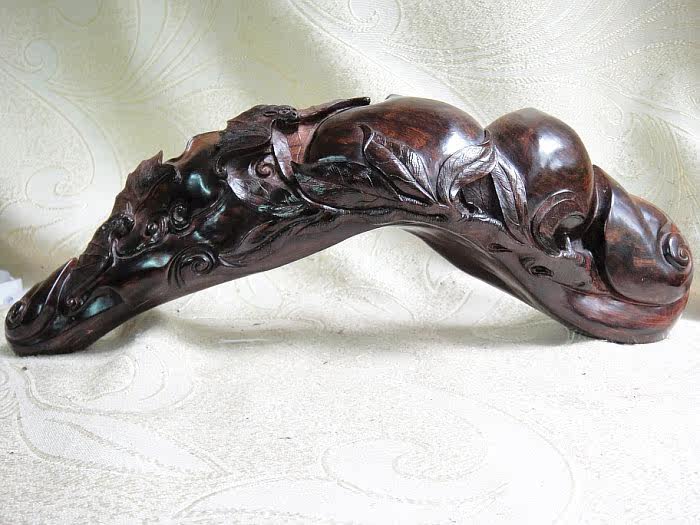 越黄油梨如意摆件 双喜临门寿桃摆件