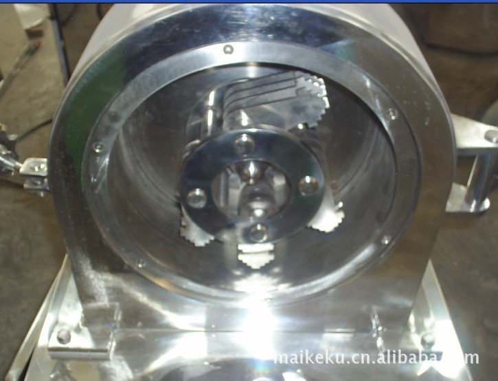 本机利用活动齿盘和固定齿盘间的相对运动,使被粉碎物经齿冲击、摩擦及物料彼此间冲击而获得粉碎。整机按“GMP”标准设计,全部用不锈钢材料制造,30BⅥ型、40B及60B型粉碎室配有水冷却夹套。该机结构简单、产量高、易清洗,是目前最理想的粉碎设备。