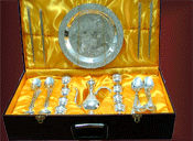 我厂是一家以纯银为原材料生产各种高档工艺礼品的企业。主要生产经营:纯银离子保健杯、茶具、餐具、酒具等。