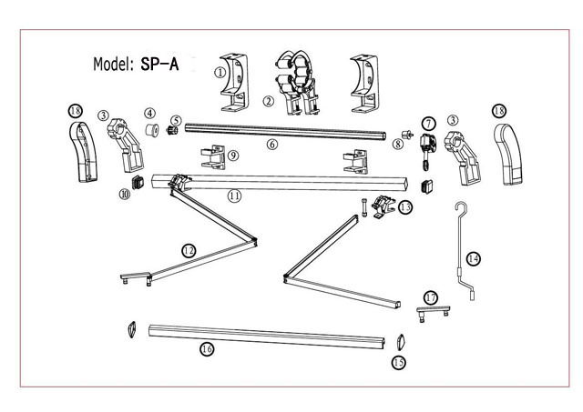 9:墙码。墙码起着整个遮阳蓬固定在墙上的作用。蝴蝶蓬上用不到这个配件