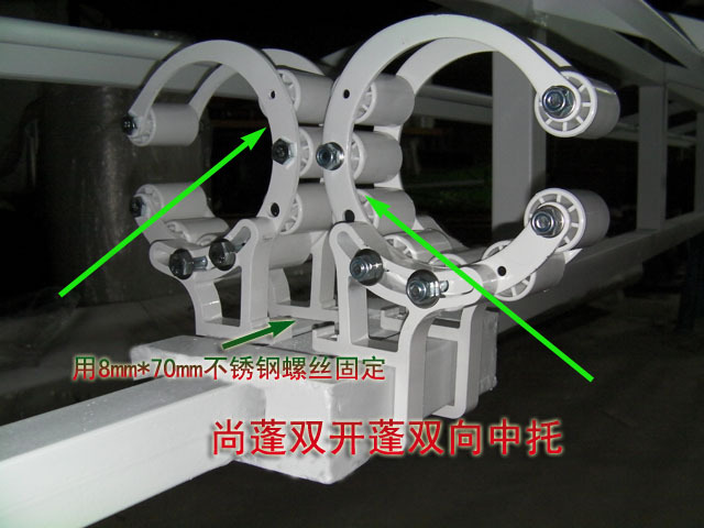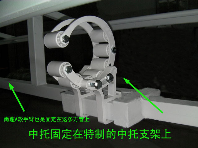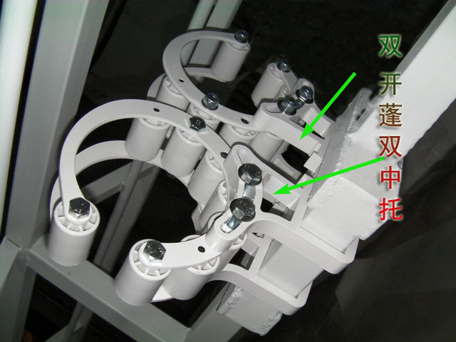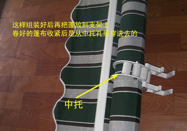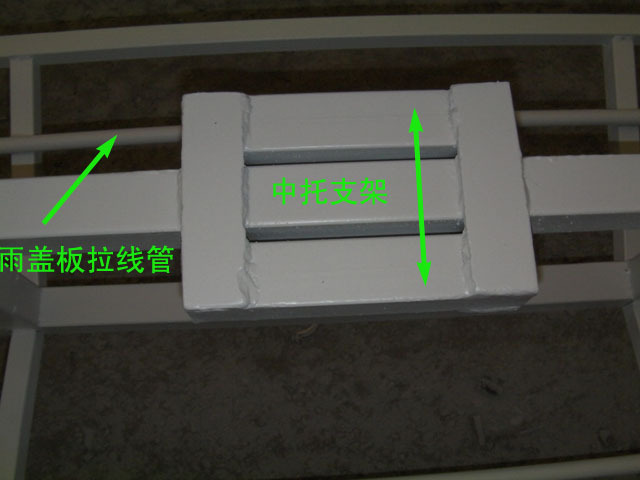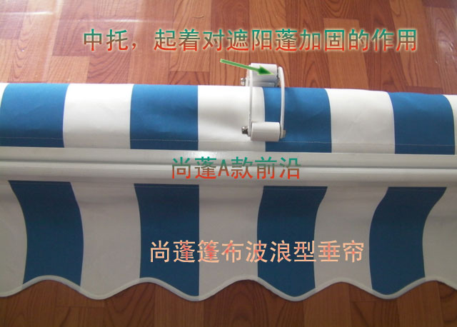 2: 中托。中托是用在超过5米宽度的遮阳蓬上,作用是增加遮阳蓬的稳定性,减轻横梁、后管的压力!