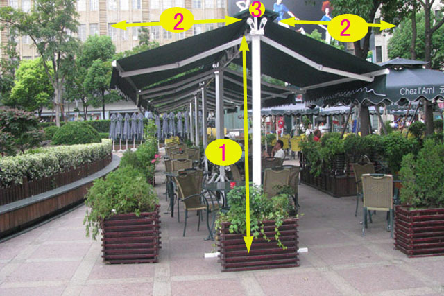 注明一下,尺寸低于4.5米宽度的伸缩蓬不需要装中托哦!