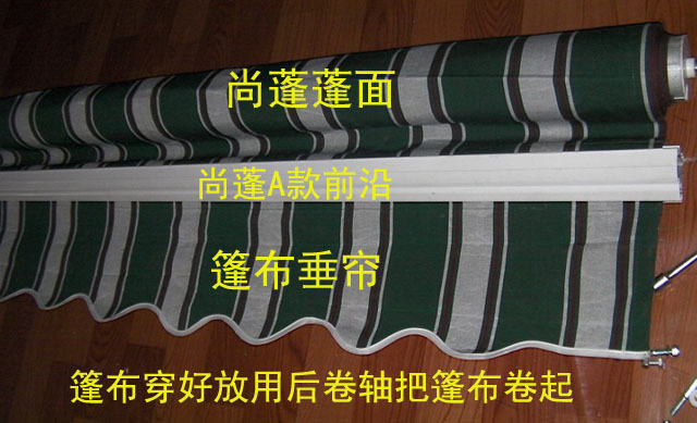 尚蓬的前沿,在穿垂帘或者篷布正身时可一定要注意分清上下,弄反了可是一定要重新来过,会浪费您宝贵时间的,所以第一次组装的师傅可要注意了,但是也别太紧张,适当注意就好!