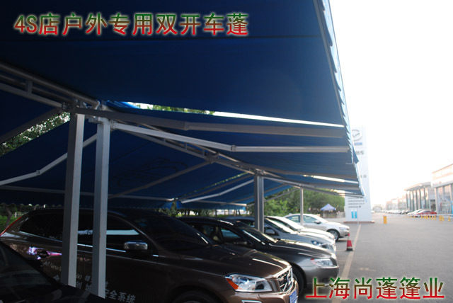 1:水波纹海蓝蓝汽车篷又名双开篷,其外形双向伸展收缩,犹如蓝蝴蝶飞入花间翅膀悠然展开闭合。双开的遮阳蓬成倍加大了遮阳空间,使得蓬下有了更多的利用空间!