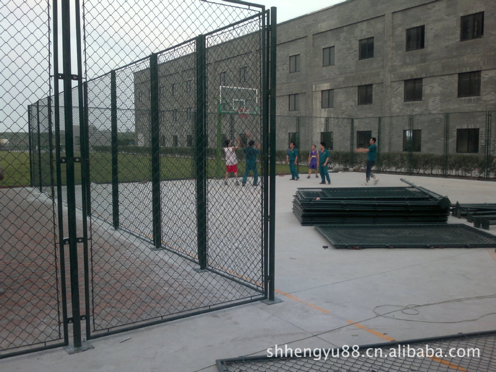 球场围栏网特别适用于高度4米以内的作为球场围网、篮球场围网、排球场地和体育训练场地 使用。浸塑产品是以钢铁为基体,耐候性高分子树脂为外层(厚0.5-1.0MM),具有防腐防锈、耐酸碱、防潮、绝缘、耐老化、手感好、环保、寿命长等特 点,是传统油漆、镀锌等涂膜的更新换代产品,其表面为浸塑,包塑处理。