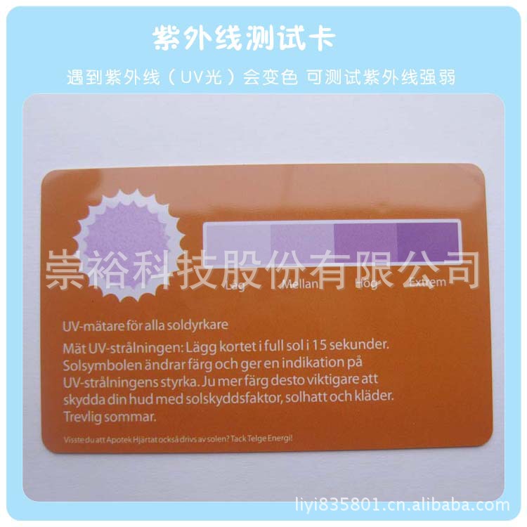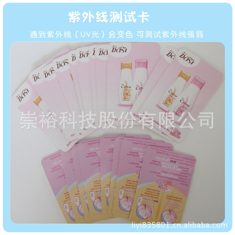 紫外线测试卡具有变色测量阳光紫外线强度功能,在阳光下能测出紫外线指数的强弱。
