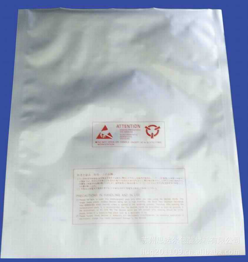 纯铝印刷平口袋材质结构PET/AL/CPE或PET/AL/NY(PA)/CPE(聚酯/铝膜/聚乙烯流延薄膜或聚酯/铝膜/尼龙膜/聚乙烯流延薄膜)两种三或四层结构,具有良好的防水,阻氧,避光的功能。整体颜色为铝箔颜色不透光。 纯铝印刷平口袋可做成多种款式:平口袋式、自封式(密实袋/拉链袋)、信封式、信封自粘式、连体式、立体式等,袋身图案可根据客户要求印刷;内外表面电阻值:108—1011Ω。适用于有防潮要求的电子产品包装:各类PC板、IC集成电路、光驱、硬盘、电子元器件等。