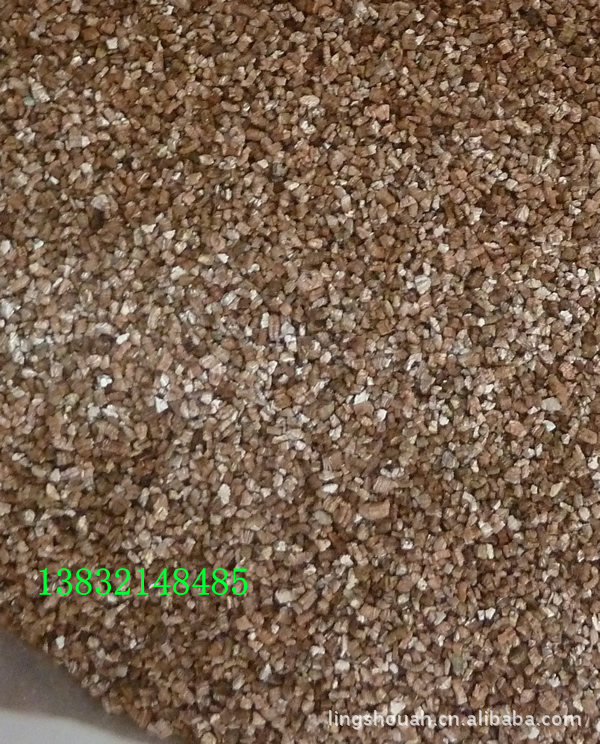 金黄色膨胀蛭石,是层状结构,层间含有结晶水,膨胀率在5-25倍,热导率小,容重在50-200kg/m3,是良好的隔热材料。质量良好的膨胀蛭石,最高使用温度可达1100℃。此外,膨胀蛭石具有良好的电绝缘性。