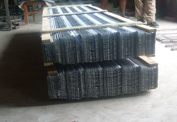 快易收口网又名“快易模板”。快易收口网镀锌钢板为原料,经加工而成,具有单向V型肋骨的单向立体网络的模板。一张完整的快易收口网横向包括6道凸起的V形网骨及每两道v形网骨间的4道舌形凸起网络面两部分,总宽一般为445mm。V形网骨是整个钢网强度的主要来源,凸起的舌形具有加强钢网与材料间结合的作用。其纵向长度有0.5m,1m,1.5m和2m等几种规格,板材厚度为0.11-0.45mm等规格。