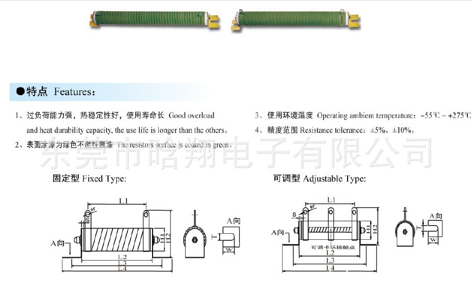 4,功率: 10W,25W,50W,75W,100W,150W,200W,250W,300W,400W,500W,600W,800W,1000W,1200W,1500W,2000W,3000W,4000W,5000W,6000W,8000W,10000W5,精度: ±5%,±10%6,阻值范围:0R1-100K