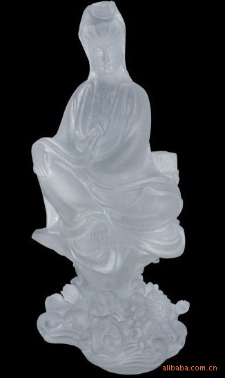 琉璃是中国古代对玻璃的称呼,是狭隘的玻璃说法,现琉璃一般是指加入各种氧化物烧制而成的有色玻璃作品,现今无论是光学玻璃、平板玻璃、水晶玻璃、或是硼砂玻璃等材质所创作之作品,皆通称为玻璃艺术品,由此可见琉璃只是玻璃的一个种类,其范畴远较玻璃要小。 琉璃的材质是人造水晶玻璃。其特质是对光的折射率高,所以能呈现出晶莹剔透的效果,在光线的配合下,更能将其艺术特质充分表达。作为琉璃不但是一件艺术品更是一件宗教物品,而通过铸造工艺制作的作品表现力强,层次丰富,精致细腻,尤其是色彩的流动变幻莫测,或热情、或含蓄,件件不同。