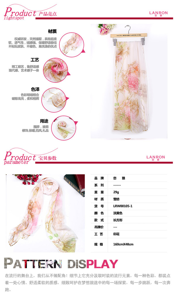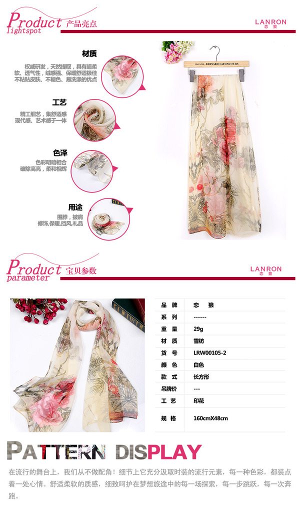 浙江恋狼服饰有限公司是一家专业从事围巾研发、生产、营销的现代化企业。公司成立于2005年,8年来,我们坚持专注于围巾领域的研究和发展,并逐步形成了独特的风格,我们将流行欧美韩日的俏皮浪漫融入东方的典雅古风,与生俱来的尊贵气质,引领国际时尚潮流,情动你我,彰显卓越!公司拥有成熟的产品开发团队、供应链团队、信息化团队、策划设计团队,员工逾百人。我们秉承一丝不苟的工艺作风,每一款产品都经过选料、设计、加工、检验等300多道严格流程,巧夺天工,精益求精。同时,公司会根据市场最新动态调整品牌,顺应市场趋势,改变销售策略,最大限度的让利经销商,保障和经销商的长久合作。