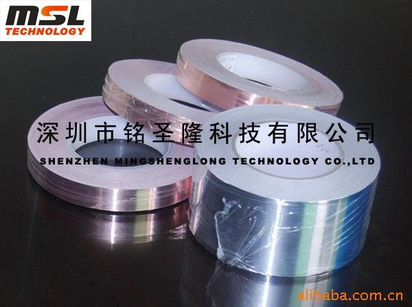 4.铜箔胶带分为单面覆胶和双面覆胶。单面覆胶的铜箔胶带又分为单导铜箔胶带和双导铜箔胶带,单导铜箔胶带即指覆胶面不导电,只有另外一面铜导电,故称单导即单面导电;双导铜箔胶带是指覆胶面导电,而且另一面铜本身也导电,故称双导即双面导电。还有双面覆胶的铜箔胶带用来和其他材料加工成比较昂贵的复合材料,双面覆胶的铜箔其胶面也分导电和不导电两种.客户可以根据自己对导电的需求来选择