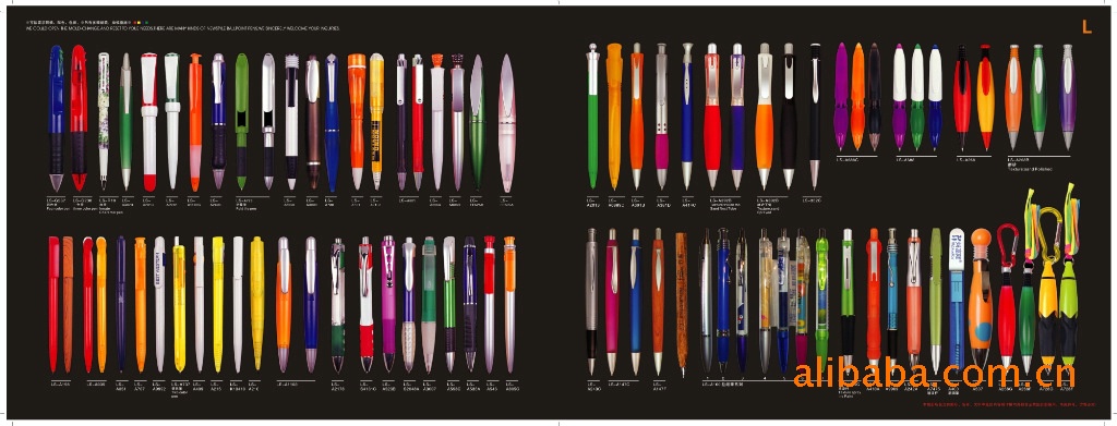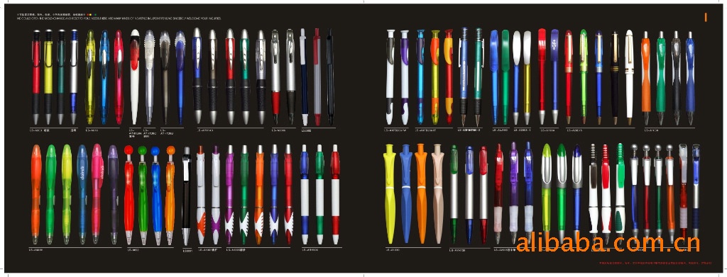 刘世企业的塑胶类广告笔系列外壳采用优质的ABS、高级硅胶生产,内件也全部按照国际标准采用环保高强度耐磨损材料.金属配件也以镀铬及全铜材料为主.笔芯油墨全部为德国进口油墨,笔尖按照国际标准为针型和子弹型0.38,0.5,0.7,1.0为主.