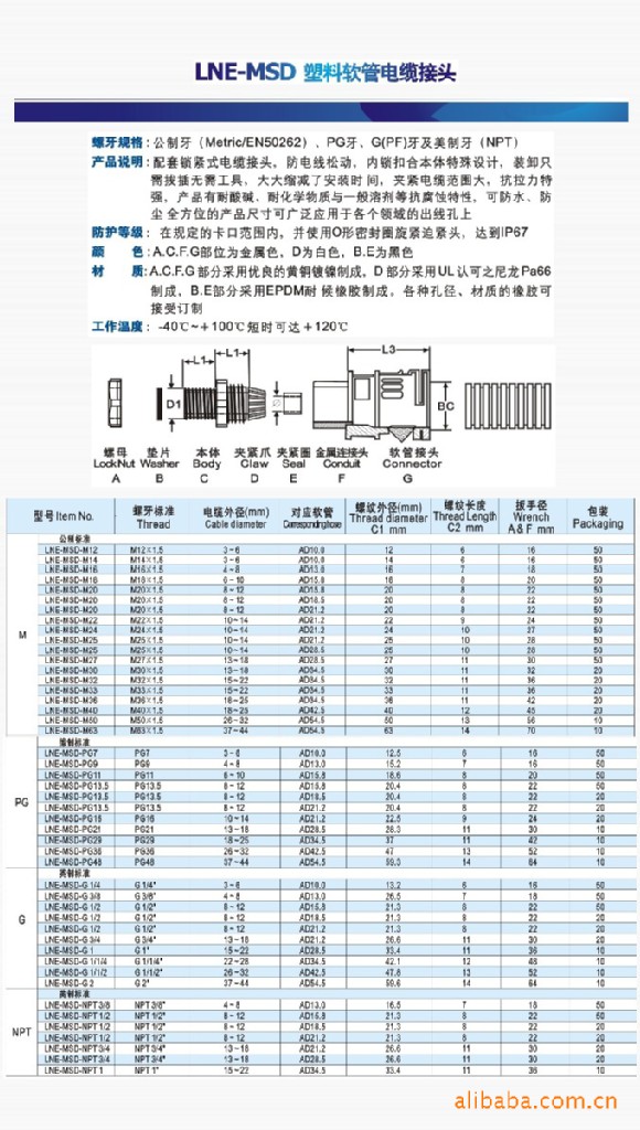 供应塑料软管电缆接头