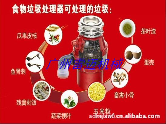在我们日常厨房使用中,会因为餐后食物残余物的处理而感到无奈和烦恼?还在清洁洗菜、洗碗盘下面那恶心的滤网吗?还要拎着滴滴答答的垃圾装下楼吗?尤其因厨房里垃圾桶、垃圾袋臭气四溢、蚊蝇、蟑螂乱飞,垃圾桶中流出污水还会在干净明亮的地板上留下肮脏不堪的痕迹?这时使用雷迈食物垃圾处理机为家庭所首选,它是一种通过高速电机驱动碾磨件碾磨和粉碎食物残余物至粉末或小颗粒状而随水流下水道自然排出的清洁器具,能处理厨房中如骨头、鱼刺、剩余饭菜等厨房食物垃圾,从而达到减轻家务负担、美化家居环境,清洁室内空气,保证家人健康等目的。