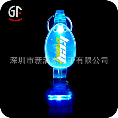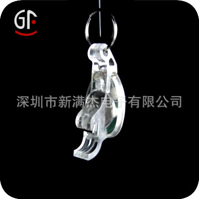 此款式设计简单外形新颖可佩戴在钥匙扣上或者挂着.底部有按键开关.
