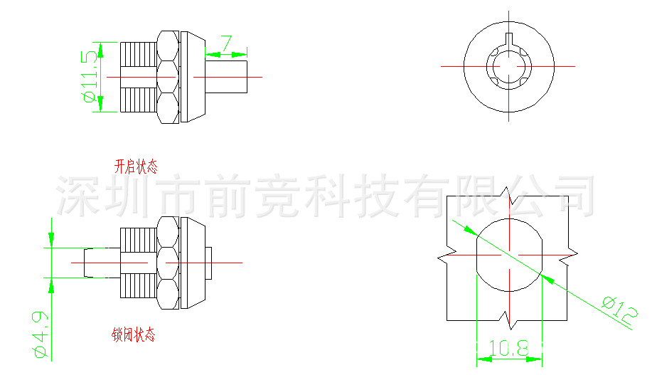 圆柱型梅花弹子按压伸缩锁广告灯箱锁QJ51-9 按压伸缩锁芯,通过按压实现径向伸缩功能,即可独立成锁,用于广告灯箱、推拉门窗、衣柜移门等;也可做锁芯,用于各种U型锁,如自行车锁的锁芯。此款锁为小型按压锁,主要用于广告灯箱和设备上的限位等。 材质:锌合金 规格:M12*10-6 表面处理:亮铬 结构功能:按压伸缩功能 适用范围:隐藏式按压伸缩插销锁、广告灯箱、插销锁芯 材质:锌合金