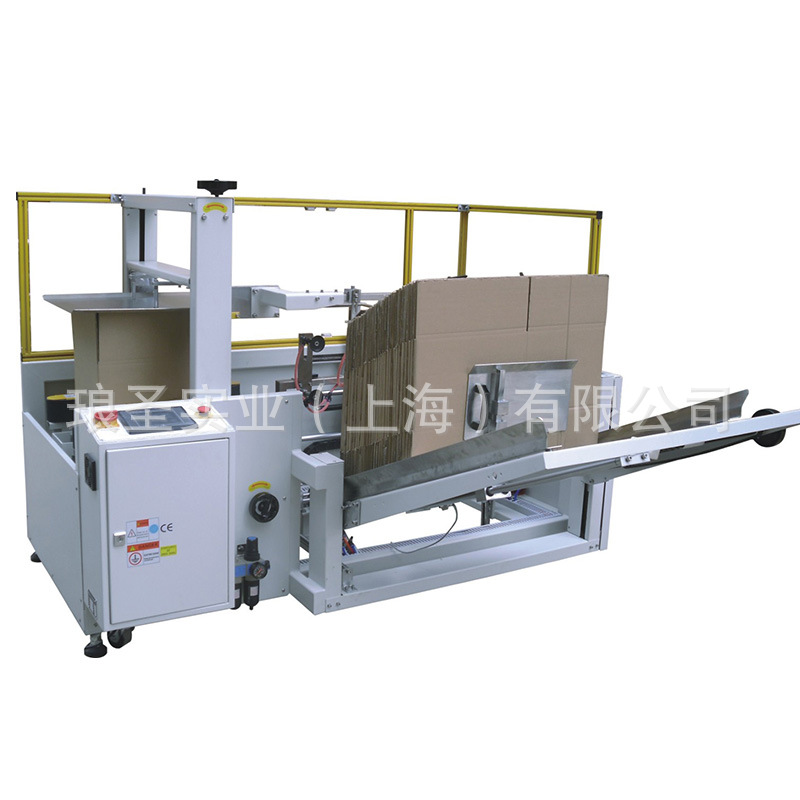 ●高自动化:自动开箱、自动折合下盖、自动密封纸箱底部,机器采用PLC+人机界面控制,操作方便、维修简单、性能稳定,是自动化规模生产必不可少的流水线设备;