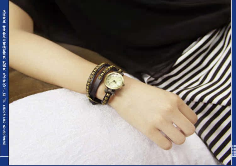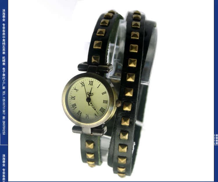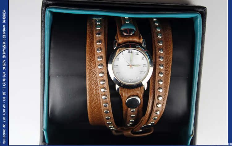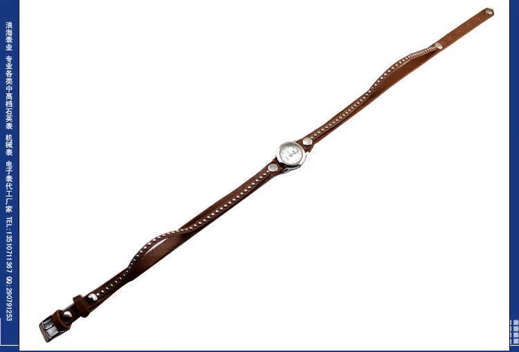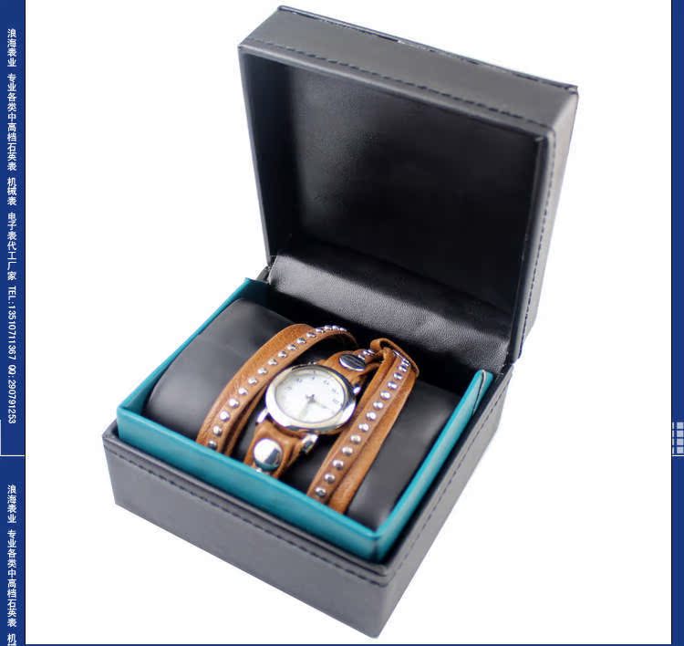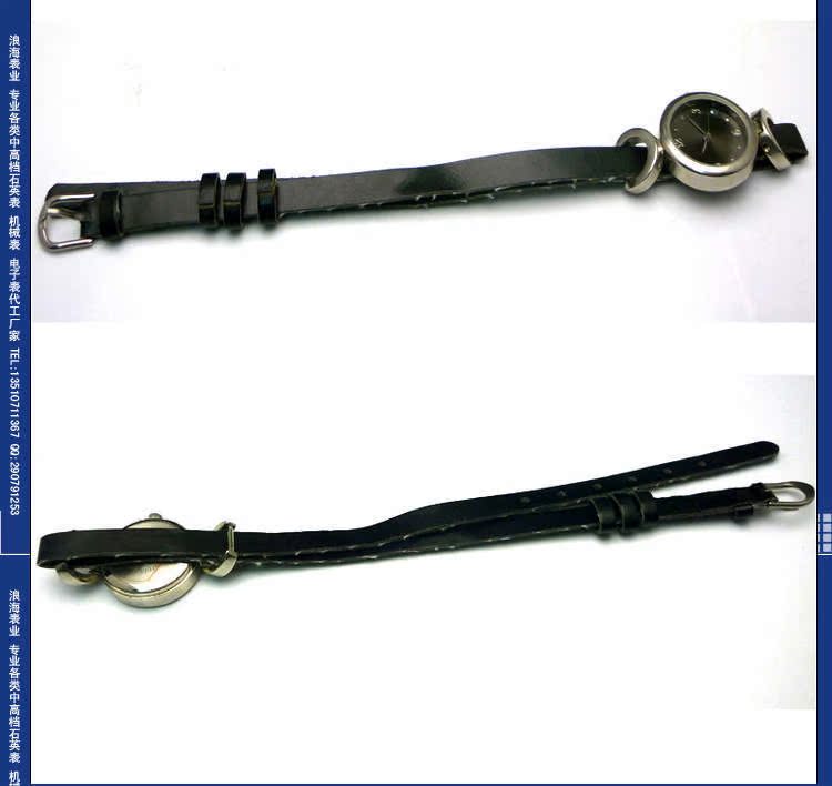 表带:优质真皮表带,不掉色不过敏(可用不锈钢/合金/真皮皮/PVC/塑胶/铜/钨钢/陶瓷/钛/玉/木等,具体按客户要求生产),可压制LOGO