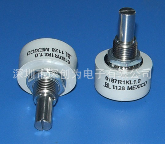 6187产品说明圈数:单圈电阻体类型:导电塑胶型(Conductive Plastic)手柄直径:6mm主体直径:22.2mm(7/8英寸)固定方式:Bushing阻值范围:1K to 100K独立线性:+-1.0%额定功率:1.0W at 70摄氏度回转寿命:5Mil.(5百万次)RoHS Compliant:Yes