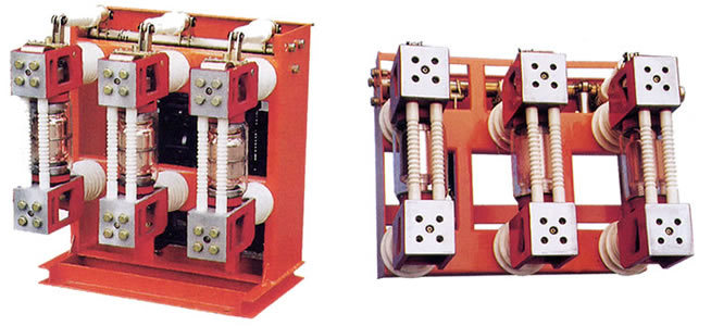 真空断路器配用中封式纵磁场真空灭弧室,当动、静触头在操动机构作用下带电分闸时,触头间隙将燃烧真空电弧,并在电流过零时熄灭电弧,由于触头的特殊结构,燃弧期间触头间隙会产生适当的纵向磁场,这个磁场可使电弧均匀分布于触头表面,维持低的电弧电压,并使真空灭弧室具有较高的弧后介质强度恢复速度,小的电弧能量和小的电腐蚀速率,从而提高了断路器开断短路电流的能力和电寿命。