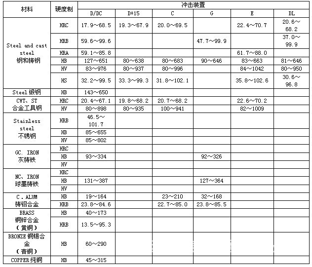 ² 硬度制式:里氏(HL)、布氏(HB)、洛氏B/C(HRB/C)、洛氏A(HRA)、维氏(HV)、肖氏(HS)