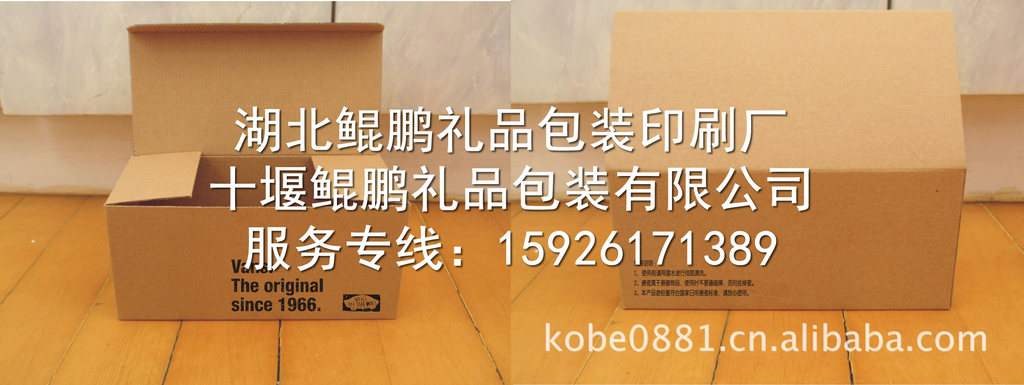 湖北鲲鹏礼品包装印刷厂是专业生产普箱彩色纸箱,E坑彩箱B坑彩箱等纸品包装的厂家。目前我公司拥有纸箱生产线2条,纸盒啤机十多台,工厂面积1000多平方,运输车多台。本公司一直以品质第一,顾客至上的经营理念。以服务质量求生存,以生产效益求发展。因而得到广大客户的信任与支持。并于2009年6月胜利通过了ISO9001:2000的质量体系认证。【鲲鹏合作客户】:世界宣明会、明翔绿松石、捷克贸易、广东云浮市妇联、十堰昱拓机械、郧县恐龙蛋化石群国家地质公园、奇瑞汽车、宜城乡香礼品行、宝钢工程、屈臣氏、湖北强生园油脂、天海石油集团、北京美鑫礼品、中国人保、荆楚人才市场、上海浦贸实业;杜康控股、融达投资、马可波罗瓷砖、东风特种商用车、竹溪汇湾梅子贡茶、欧缇丽(CAUDALIE)、陕西省(天宝)现代农业园、丹江口市铸锅厂、武当珍禽养殖园、十堰熀鹏商贸、婺源县星河酒业集团、鄂尔多斯琩玖农牧业开发园、十堰博天装饰、吉林朵拉朵尚化妆品、竹溪县楚风生态园、枣阳狮子山育苗基地、海尔整体橱柜久盛地板、湖北神农本草中药、武汉双龙世纪、杭州安仕派宅配、雅漾(Avene)、武当太极湖水上游、沈阳大光尚品农产品、多喜爱家纺、白河县紫熙农产品开发园、美国沃尔玛百货山姆会员店、郧府薯业、葡国蛋挞工坊、四川福香风干食品、太极湖国际广场开发、江之韵郧阳特产、十堰佳英房地产、江苏海企国际、郧阳白羽乌鸡养殖场、十堰工商银行、房县特产豆油筋、十堰秀尔茶叶、郧县优质麻油生产基地、十堰永源果业、商洛市禄同实业、十堰兆凯物贸、广州稳固汽车用品厂、玉屏县聚鑫食用菌合作社、吉尼斯冰人王金图、十堰大唐酒厂、宣威火腿、湖南吴记湘奇特;拓梦教育、Estack辐射检测仪、三盟汇舍三文鱼餐厅、解放军某部队、十堰市智帆科技、重庆秀山现代农业开发园、荆州诚信副食、十堰市自然钓鱼联盟…本厂竭诚欢迎新老客户来电来函洽谈合作,提供设计稿来图加工,咨询电话吴经理:15926171389;业务QQ:125973634;工厂网址:/