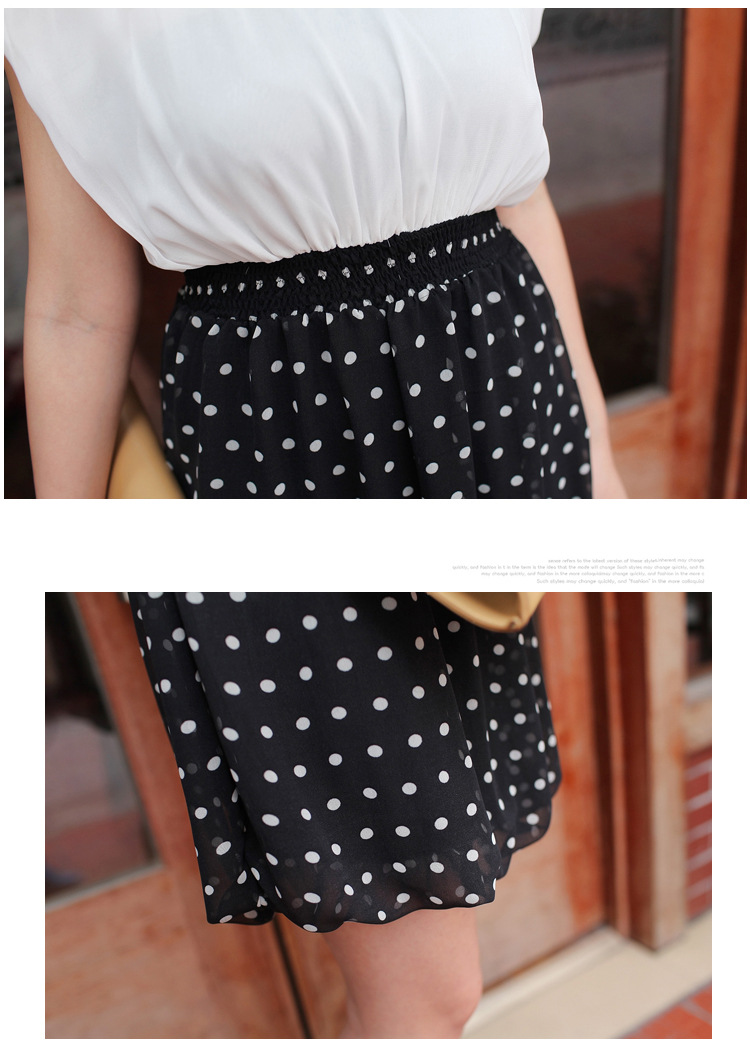 一件代发韩版雪纺连衣裙 韩版假两件收腰时尚黑白 短袖连衣裙B79