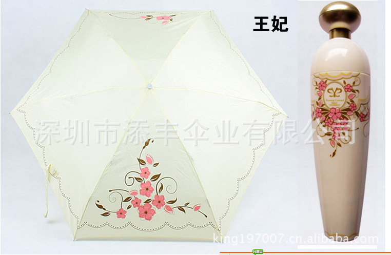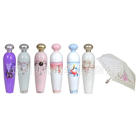 香水瓶雨伞是一款新奇且集浪漫与实用并存的晴雨两用伞,独具个性的香水瓶外形设计,瓶身可随意设计不同花色与LOGO,深受当代都市女性喜爱,是展现个人魅力及追求个人品味的个性表现;不论是商务馈赠,广告促销,还是亲朋好友送礼都是最佳的选择!