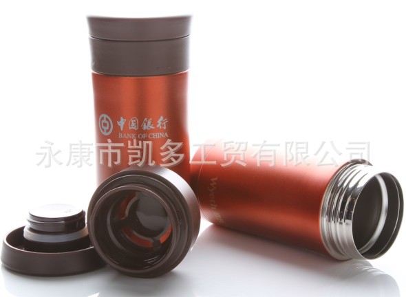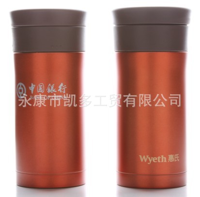 3.贴金—即金属贴片,用金箔在杯身贴上所需的图案和文字,颜色金色,感觉高贵,但是费用高,主要适用于不锈钢保温杯。优点:高雅高档!