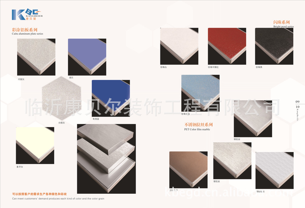 铝蜂窝板表面采用聚脂或氟碳辊涂处理的3003H24优质铝板。芯层为六边形铝蜂窝结构,互相牵制的密集蜂巢窝犹如许多小工字梁,可分散承担来自面板方向的压力,使铝板受力均匀,保证了面板在较大面积时仍能保持很高的平整度。封边为6003高强度工业铝型材,表面氧化或喷涂处理,既美观又保证了强度。法国三明治夹心板的专用复合工艺,使六竣铝蜂窝板具有更显著的优异特性。因其具有平整度高、防水、耐候、防污、质轻、不燃、现场易加工等与生俱来的特点,彻底解决了以往卫生间隔断各种材料的弊端,是高档卫生间隔断板材的最佳选择。
