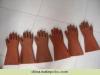 绝缘手套是用天然橡胶制成,用绝缘橡胶或乳胶经压片、模压、硫化或浸模成型的五指手套,主要用于电工作业。