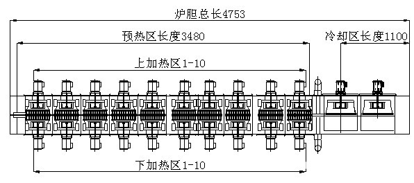 加热区数量 | 上面10个温区下面10个温区独立温控,可分温区单独开启。可分区加热,以减小起动功率。 |