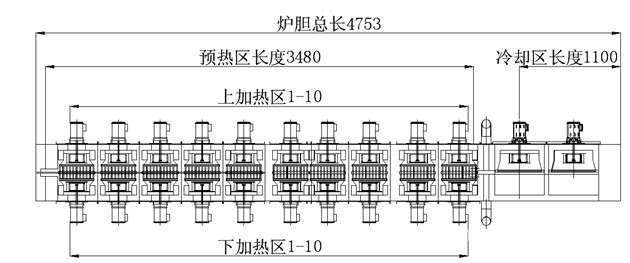 单区加热区功率 | 2、3、4、5、6、7区各为4千瓦,1、8、9,10区为6千瓦 |