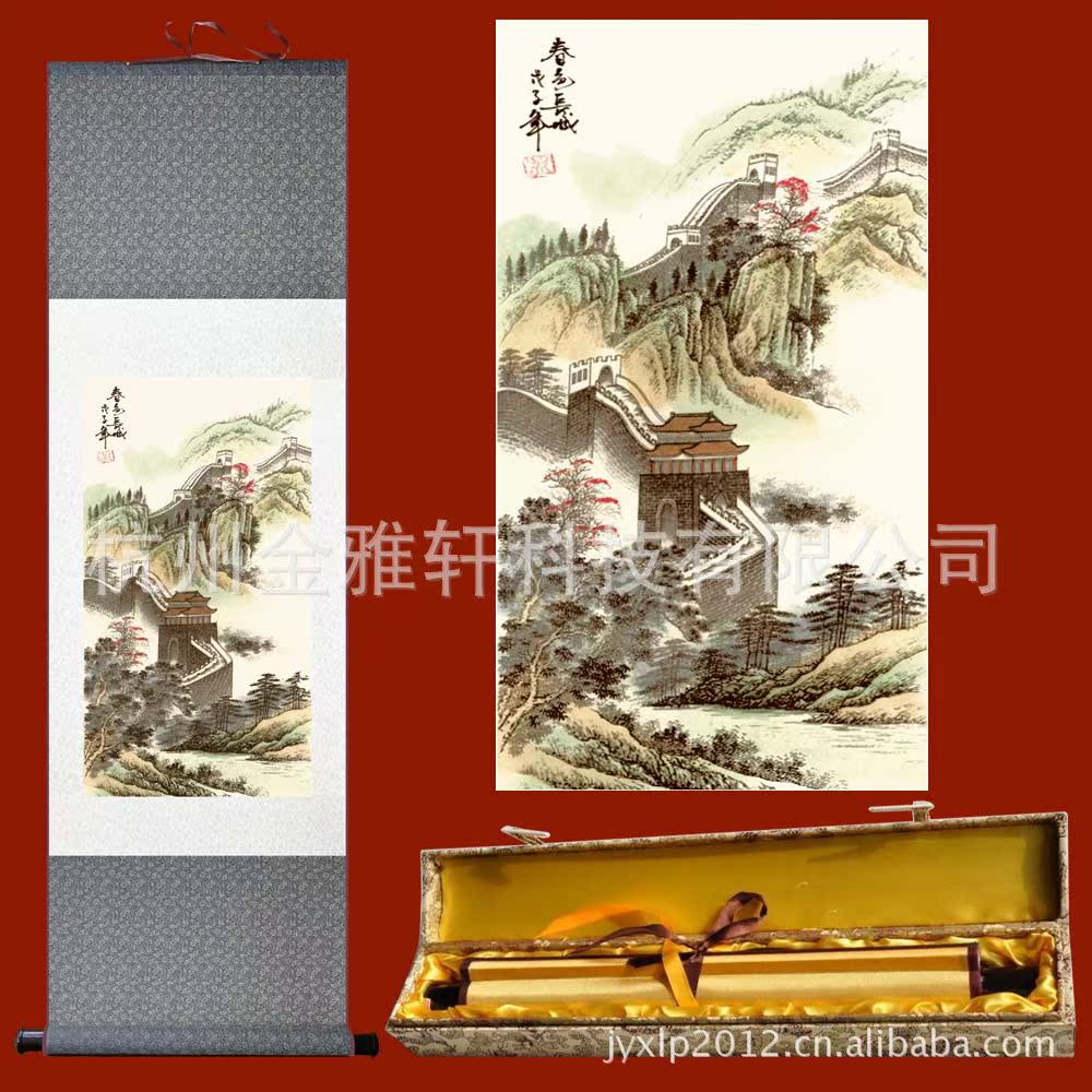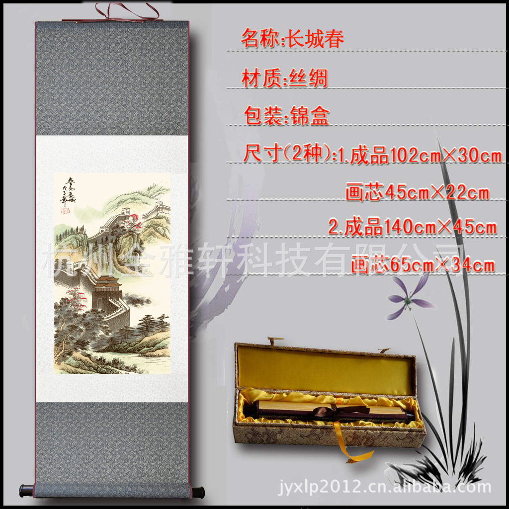 本公司产品运用现代高科技等多项发明专利与传统手工艺相结合,以丝绸为载体,以传统文化艺术为题材、采用高仿彩印;数码立体织锦;丝绸刺绣;传统杭锦;喷气织锦;手工彩绘;丝绸特殊彩印;热转印;烫金印;书画装裱;装框等多种工艺精制而成。生产出的产品画面平整、清晰,色彩丰富而华丽,不变形、不褪色、不发霉。包装精美而考究。便于携带等诸多优点和特色。不同于普通宣纸画易潮、易破损、易生虫、发霉,不便于收藏等劣势。真丝画面保养和维护也非常方便和简单;如因画轴存放时间长了发现有污垢、油污等,可以取下丝绸挂画用少许清洁汽油擦洗,或用少许洗洁精涂在丝绸画面有污垢油迹的地方进行擦洗,然后用面巾纸擦干即可。如反面发现有气泡或不平整也可用电熨斗调到适当的温度对丝绸画面进行熨烫即可解决。但温度不要太高防止烫伤。所有的真丝画或立体织锦画、丝织卷轴画、丝绸挂画、镜框画、挂毯画都可以按此操作保养和维护。这也是普通宣纸国画所无法比拟的特色礼品的优点之一。如果你的丝绸画挂了一两年后不想挂了,你可以把它放入锦盒内收藏起来,等你想挂的时候再重新拿出来悬挂还是非常有价值的,因为好的真丝立体织锦画轴只会增值不会贬值。这也是你选择丝绸文化礼品的理由之一。丝绸系列文化特色礼品非常适合对外交流、个人珍藏、家庭居室装饰。具有极佳的文化价值、艺术价值和收藏价值。