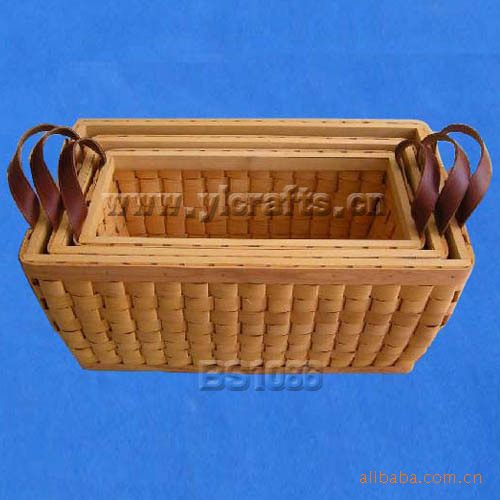 1、我厂专业生产各种款式,花样,用途,颜色等木片篮也可根据客人的图样和来样要求制作。款式简单,大方,纯自然素材制作,纯手工编织,天然环保,使用安全可靠。可用于家居水果篮,收纳篮,或者礼品、化妆品包装篮。有需求者请随时联系.