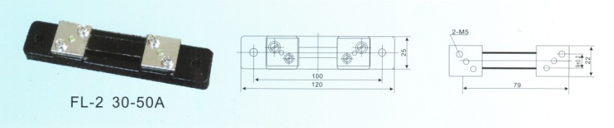 FL型0.5级定值分流器的额定电压降为75mV,供在直流电路中,配合75mV量限的磁点系毫伏表,作测量大电流之用。