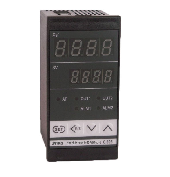 产品介绍: JYC800系列智能温度控制器是采用专用微处理器的多功能调节仪表,它采用100-240V(AC)宽范围电源电压输入的开关电源和元器件表面贴装技术(SMT),并有多种外型尺寸。仪表精致小巧、性能可靠。具有多种传感器通用输入功能、多种控制输出方式和多种报警方式。特有的人工智能和专家PID控制功能、PID自整定功能和自诊断功能。使操作者可以通过简单的操作而获得良好的效果。