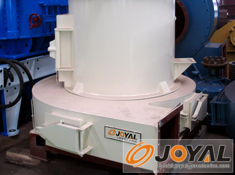 物料研磨后,粉末随鼓风机循环风经过分析机进行分选,细度过粗的物料落回研磨室重磨,合格细粉则随气流进入旋风集粉器,经出粉管排出即为成品。气流通过旋风集粉器后又进入鼓风机形成闭路循环,从而使机器连续正常工作。余风则通过余风管进入除尘器经净化后排出机外。