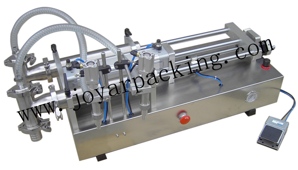 可选配件a.针式灌装头:适用于小口径瓶和软管包装产品的灌装。针头部分口径、长度可根据容器的具体尺寸定制。 b.转/球阀控制系统:适合不同黏度及包含颗粒的物料,并能解决高位、高压供料带来的各种压力问题。 c.料斗:建议灌装黏度较大产品时配置,以达到更好的灌装效果。 d.升降式灌装系统:灌装时根据灌装量及灌装速度的需要来调节升降气缸的升降速度,从而使灌装头随 着液位的升高而升高,以达到消泡的目的。
