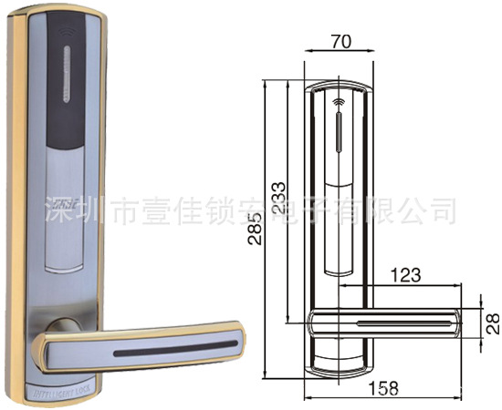 锁面尺寸:高285mm 宽70mm 厚25mm;