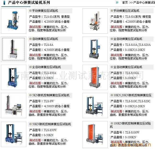 弹簧拉压试验机包括手动弹簧拉压试验机、全自动弹簧拉压试验机、微机控制弹簧拉压试验机,另外本厂还推出了精密型弹簧拉压试验机,专门用于精密性要求较高弹簧的检测。