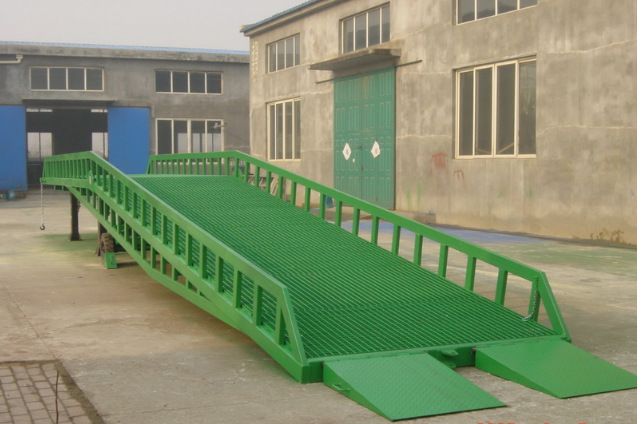 移动式液压登车桥广泛用于物流场所,是与车配合使用的货物装卸辅助设备,借助该设备,叉车能直接驶入汽车集装厢内部进行批量装卸作业,只需单人操作,不需动力电源,既可实现货物的安全快速装卸;又可减轻劳动强度,又能成倍提高装卸作业效率,加快物料流通速度,获取更大的经济效益。