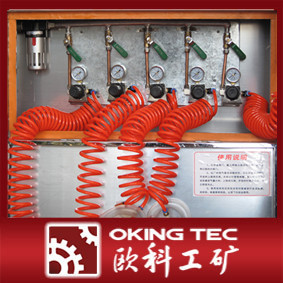 矿井压风自救装置一般形成系统后使用,即由若干组压风自救装置安装在同一个地点形成压风自救站,每组一般由3~5个头组成,每个地点装多少个头,应视该工作场所的工作人数而定,其安装头数应大于在该场所工作的人数。该装置系统结构简单,价格便宜,是一种经济型性自救装置系统。