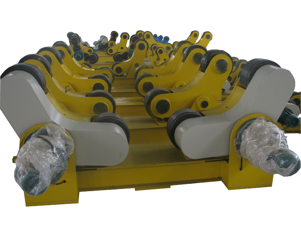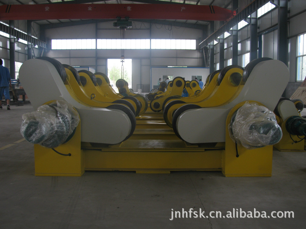 自调式焊接滚轮架可根据筒体直径大小自行调节。其驱动采用摆线针轮减速机方式或蜗轮蜗杆减速机方式,双电机驱动。根据用户的需求,滚轮分胶轮、钢轮、钢胶组合轮三种形式 ;可与其它设备联动控制。该滚轮架主要用于圆柱形筒体的焊接、抛光、衬胶及装配等,还可与其它工装配合进行锥体、分段不等径回转体的装配和焊接。本产品广泛应用于风电、压力容器、石化、管道、钢结构、锅炉、造船、堆焊修复等行业。本厂还可根据用户需要设计、定制各种类型的滚轮架。