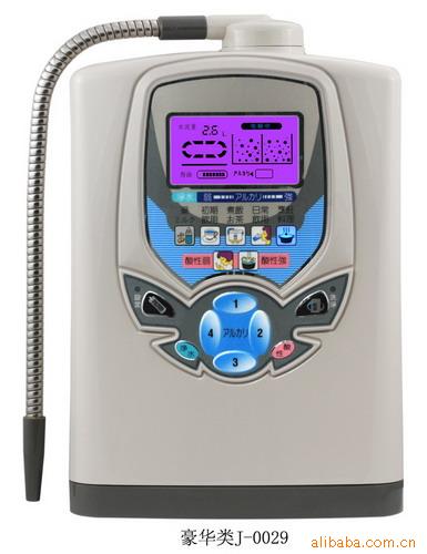 我公司的电解水机是引进日本技术与原材料所生产,其制造原理就是:以分离膜为媒介在水中施以直流电压,利用电解板使水分解,既而分离出碱性水与酸性水。由于水中的钙、镁、钠、钾等矿物质多聚集在阴极,氢氧离子(OH-)增加而成为碱性水,也称为还原水,适合于饮用与保健等;氧、硫酸、硫黄等则被引致阳极,增加氢离子(H+)而生成酸性水,也称为氧化水。适合于清洗,消毒,美容等。